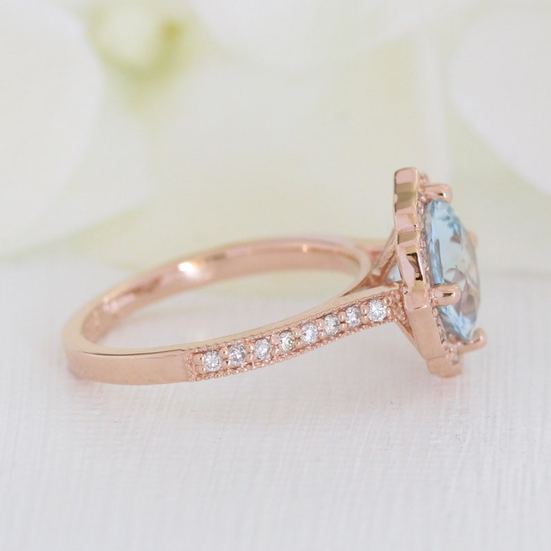 The center stone is 1.0ct white sapphire all sizes are available this ring would make excellent engagement ring or a very special present for your loved one. Aquamarine ring, pear aquamarine engagement ring, dainty stacking ring, halo ring, 14k rose gold rings, march birthstone, bridal set mdnice 5 out of 5 stars (482) Pros and cons of aquamarine engagement rings. Gold pyramidal pear shaped engagement ring. Best aquamarine jewelry on etsy.